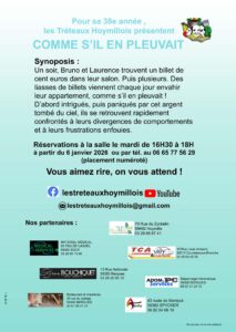 Les représentations auront lieu tous les samedis à 17h et dimanche à 16h du 14 février au 8 mars 2026, salle des fêtes prés de l’église de Hoymille, entrée 7€.